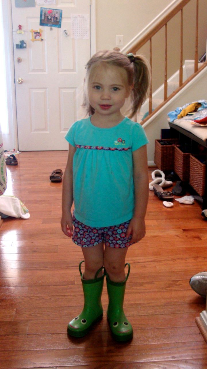Who can resist a little girl in pigtails and froggy boots? I can't :) Her new-to-her froggy boots are my daughter's favorite fashion statement.