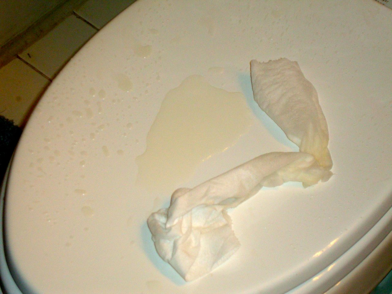 Note to self: Lift up the toilet lid before going to bed to make it easier for the very sleepy 4-yr. old who is trying to stay dry at night to go to the potty. Otherwise this sight might greet you!