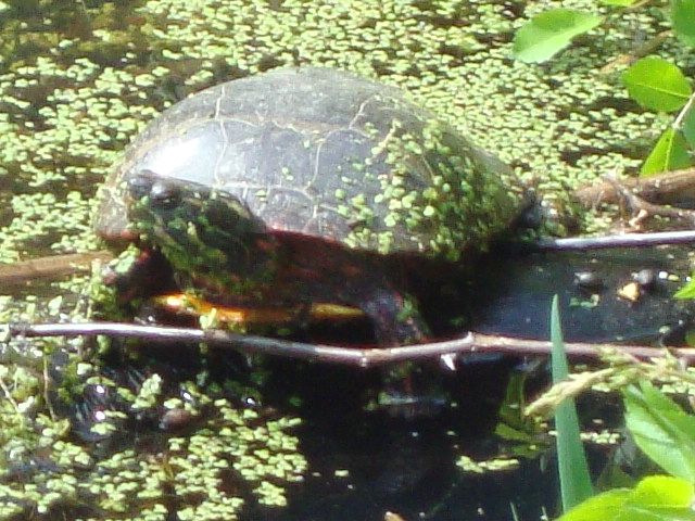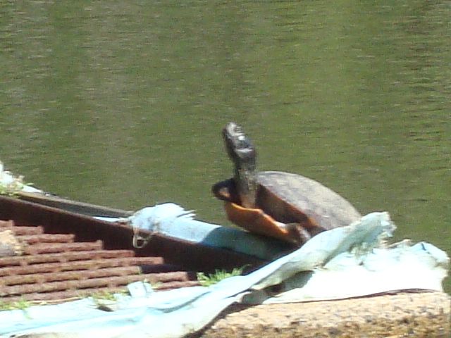 A box turtle sunning himself on a floating dock. Just one of the cool things we saw on our field trip to Meadowside Nature Center.